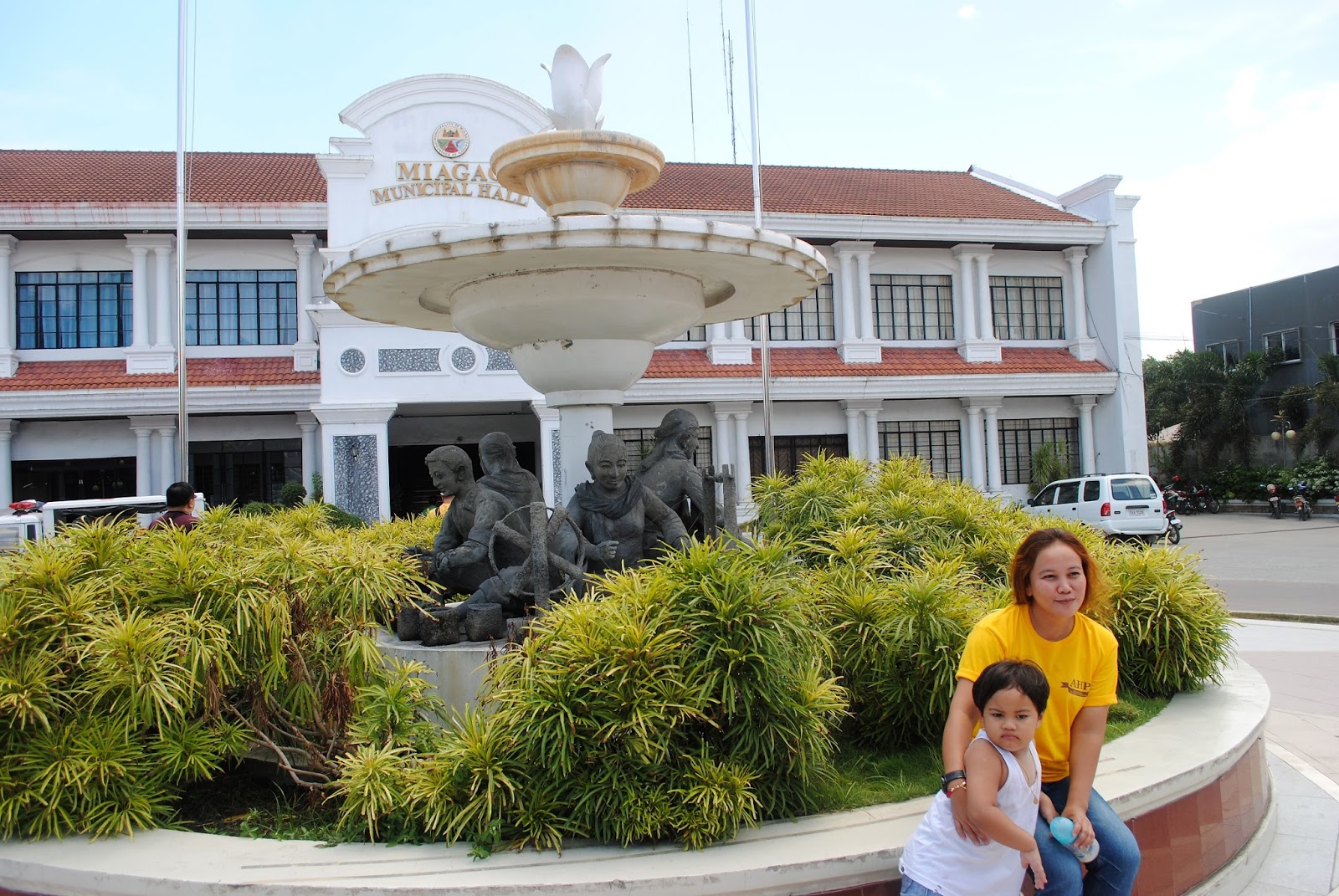 Lunch at Miagao Municipal Hall was sponsored by the local government. We were warmly welcomed at the town Hall and they were only too happy to have an AVP of the town's history and it's national treasure. at the lobby were samples of the local weave called Hablon. The town takes it name from the Miagus plant that grows abundant in the area. But more than a heavy lunch, I had a drink of water at a 7-11 building that blocks the view of the church from the road. Another photo bomber of a national treasure!