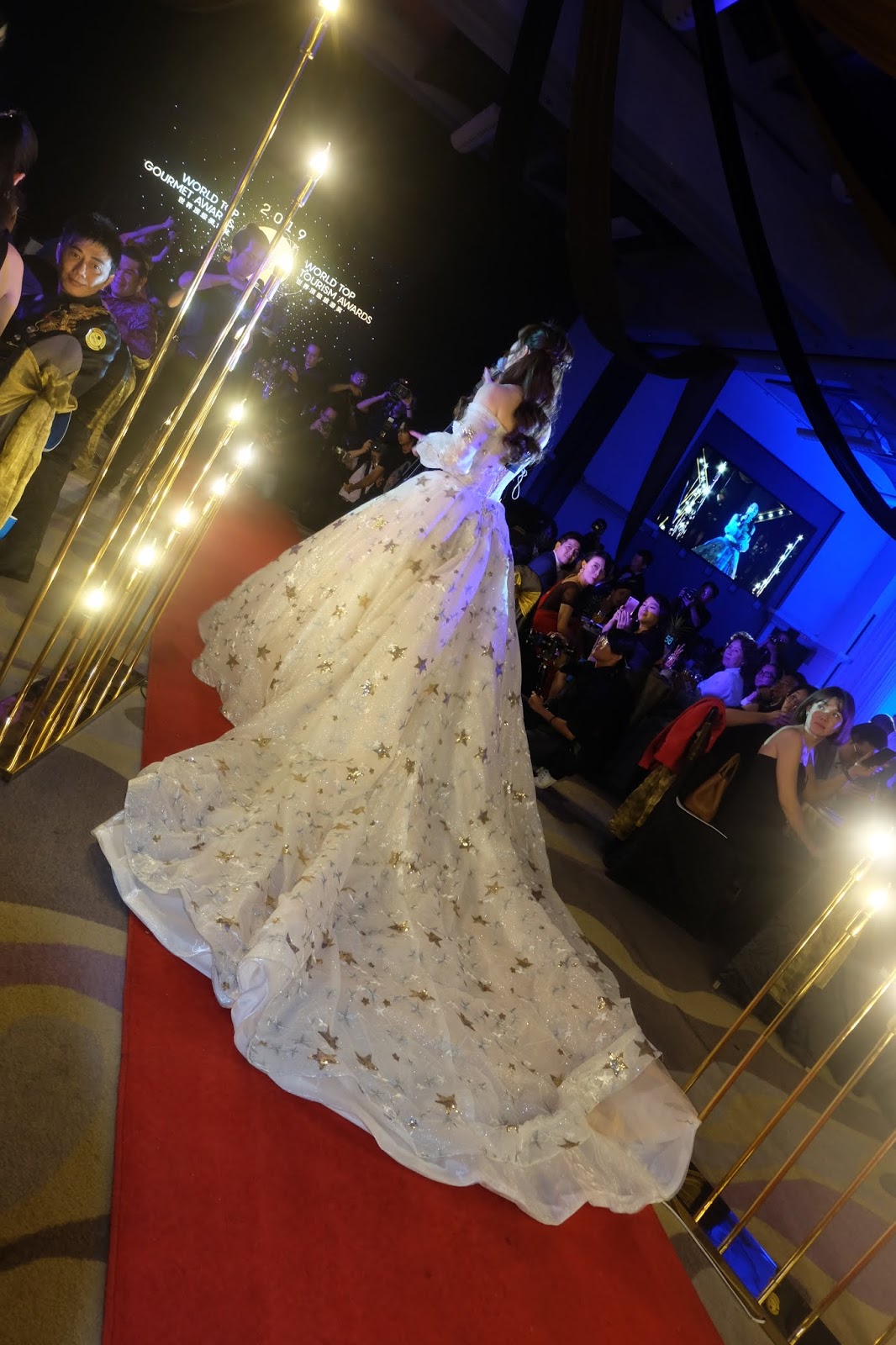 ONLY HER GOWN MADE BY GLITTER VENUS THE BOUTIQUE OWNED BY VENUS CHENG CAN CREATE SUCH A GRAVITY DEFYING BUSTIER THAT STANDS ERECT ON ITS OWN, HEHE