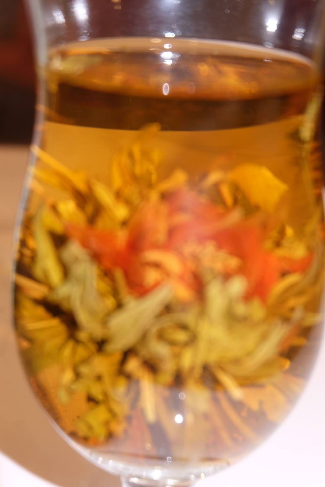 NOW TO COOL OFF AND CALM OUR NERVES WITH NOURISHING AND TASTY FLORAL TEATHE BUD OPENS TO REVEAL A FLORAL COMPOSITION!