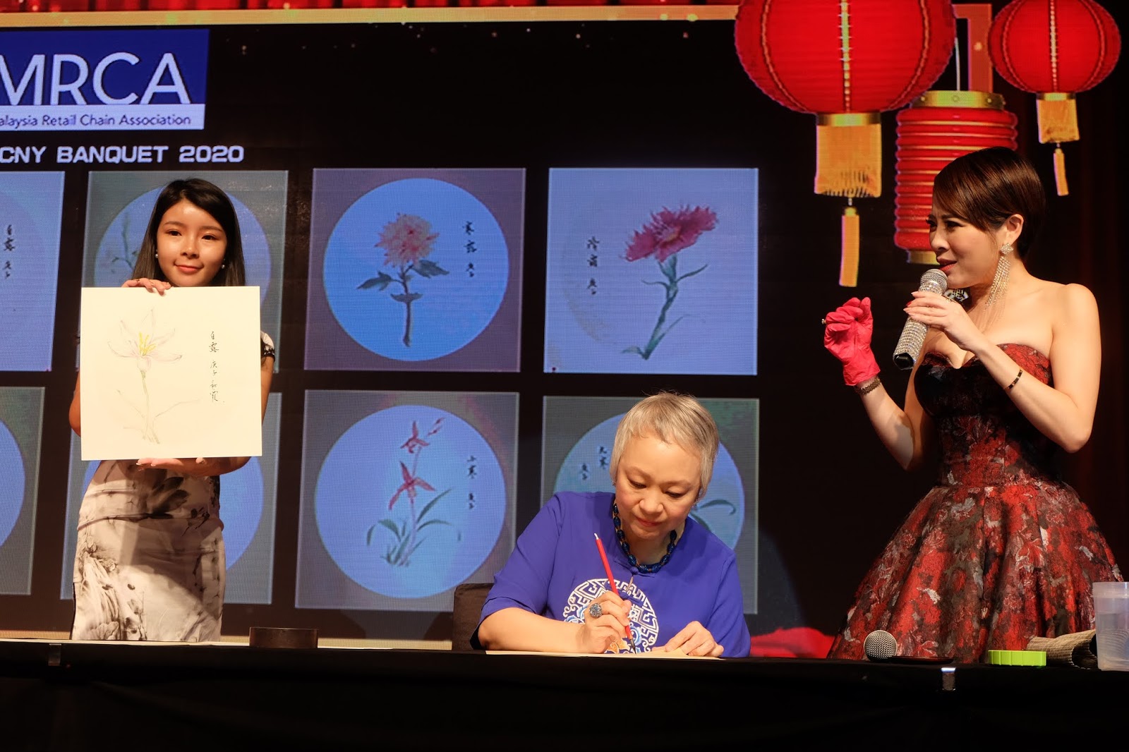 PUAN SRI CHELSIA CHENG GOING ON STAGE TO PAINT AND AUCTION HER CHINESE INK PAINTINGS WITH ALL PROCEEDS GOING TO CHARITY! WELL DONE!